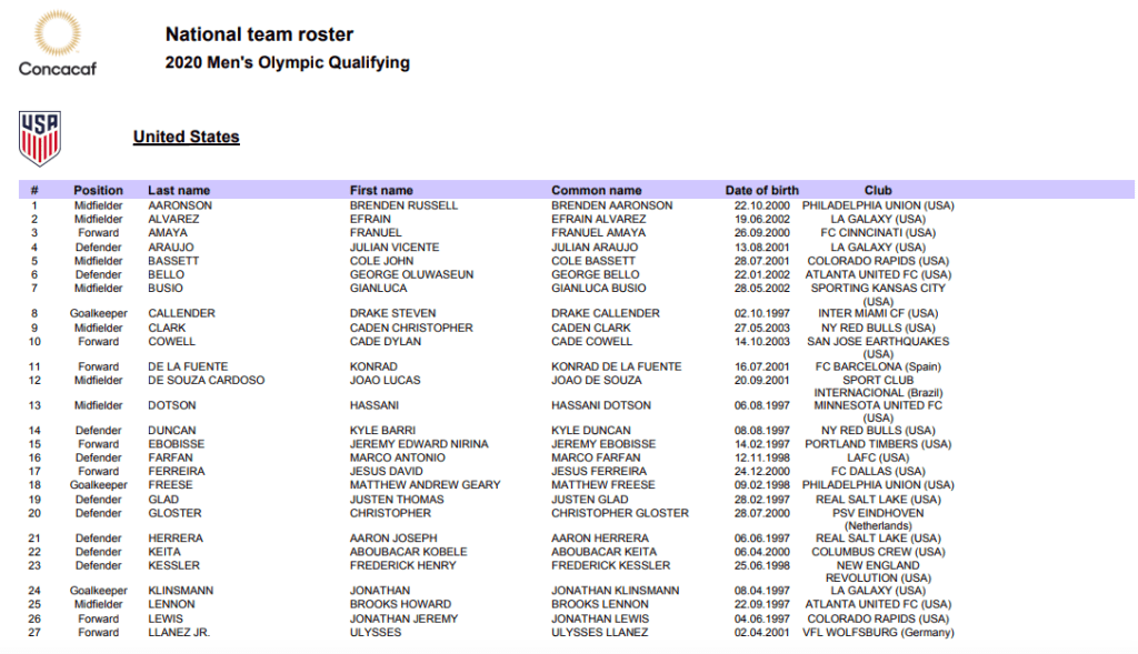 As oitos seleções da CONCACAF que vão disputar o torneio pré-olímpico em Guadalajara, entre os dias 18 e 30 de março deste ano, valendo vaga na Olimpíada de Tóquio, anunciaram suas listas prévias de convocados.