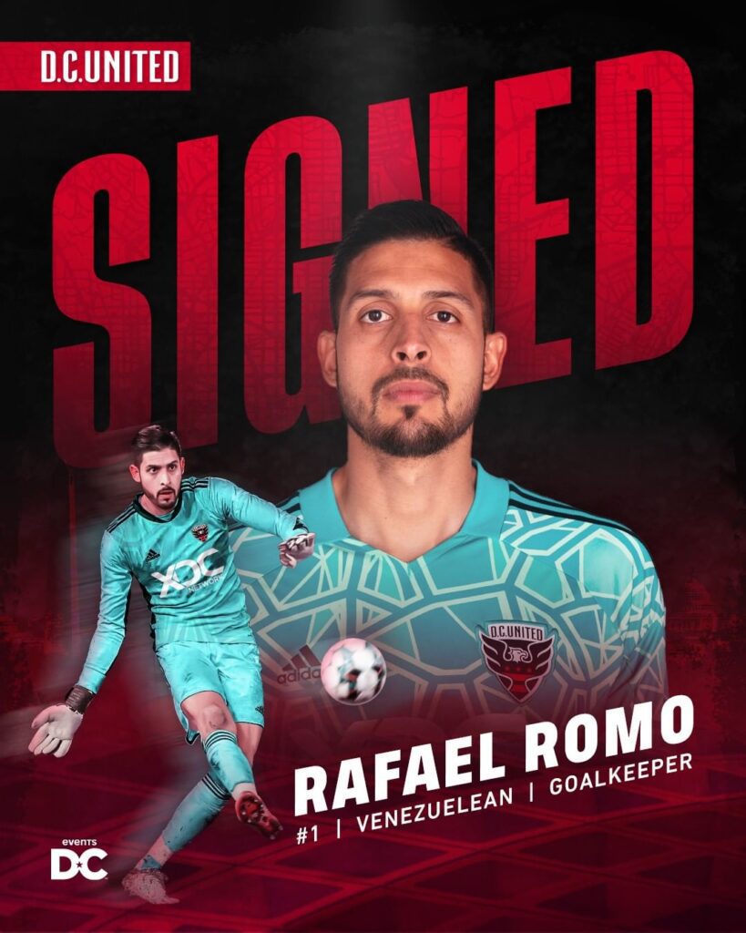 Em anuncio feito nesta quarta-feira (27), o D.C United divulgou a chegada de Rafael Romo, goleiro venezuelano, de 32 anos. O contrato de Rafael com o time da capital americana vai até 2023, com opção de renovação para 2024.