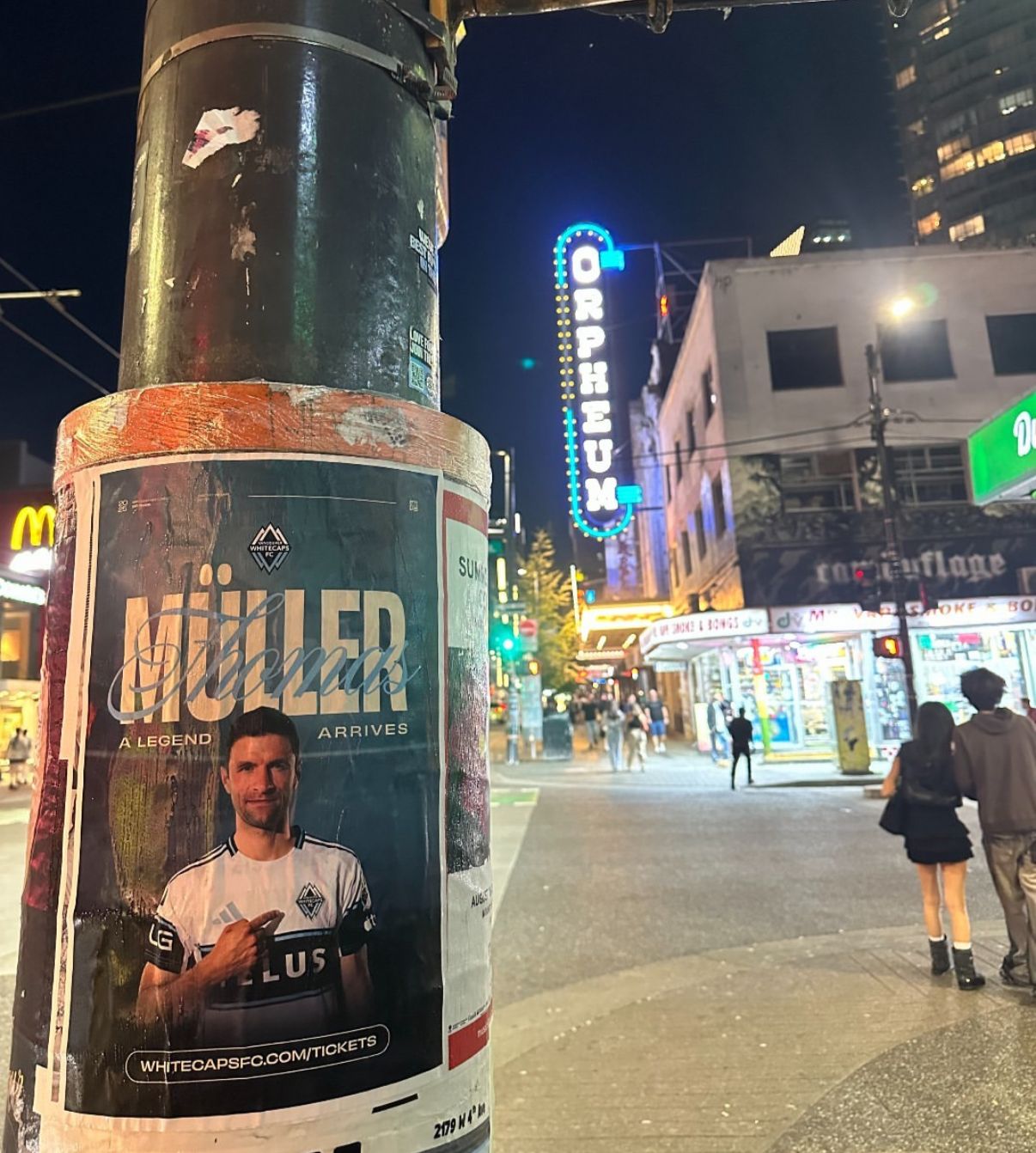 O Vancouver Whitecaps está transformando a cidade em um palco para receber um dos maiores nomes do futebol mundial. Nesta terça-feira, cartazes com a imagem de Thomas Müller e a frase em destaque “A Lenda Chegou” foram espalhados por diversos pontos de Vancouver, despertando a curiosidade dos torcedores e reforçando o peso da contratação histórica.