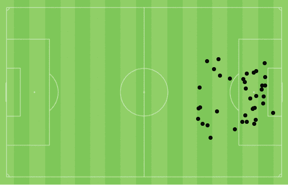 (Mapa de Finalizações Gareth Bale – InStat)